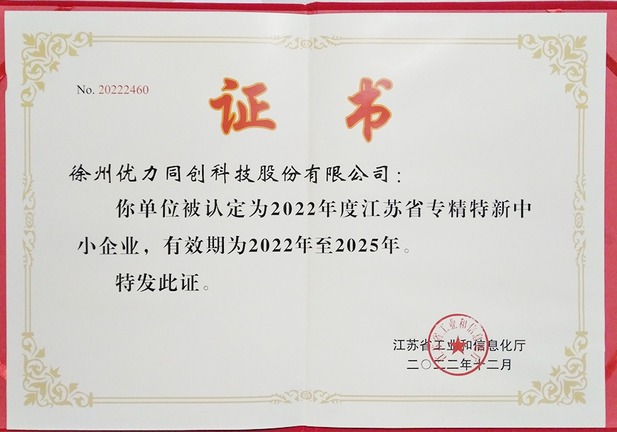 公司與2022年12月12日通過(guò)了江蘇省工業(yè)和信息化廳認(rèn)定的2022年度江蘇省專精特新中小企業(yè)認(rèn)定。